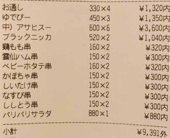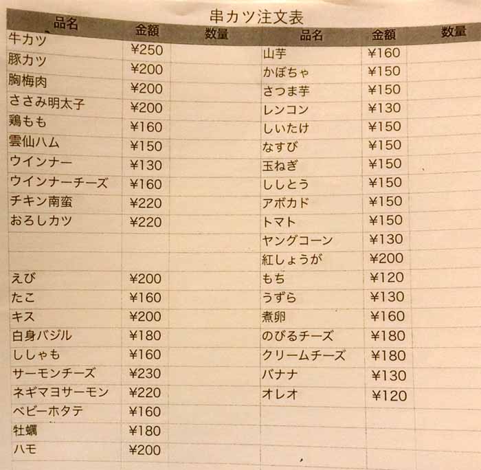| 串カツ注文表 | |