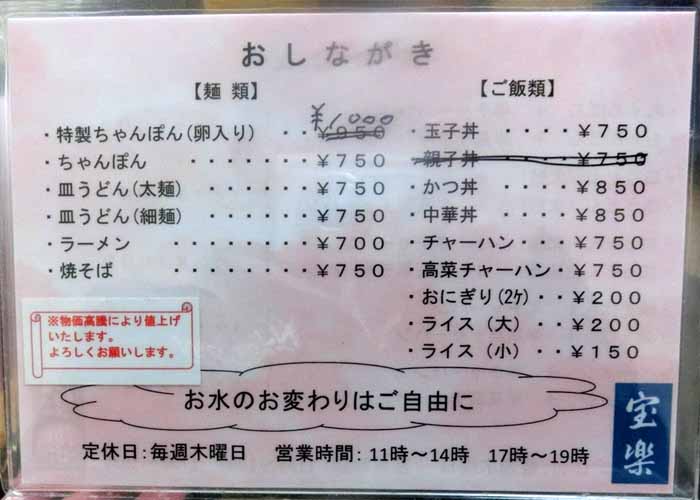 | ちゃんぽん:750円 | |||||||||||||||||||||
