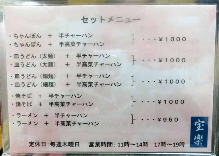 | ラーメン/半チャーハンセット:950円 | |||||||||||||||||||||