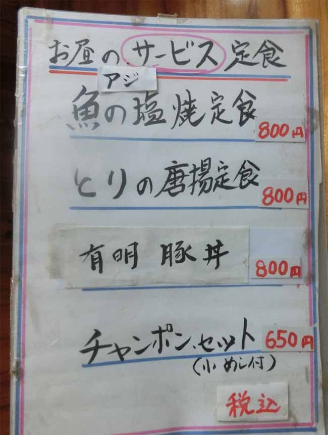 | お昼のサービス定食:ちゃんぽんセット:650円 | |