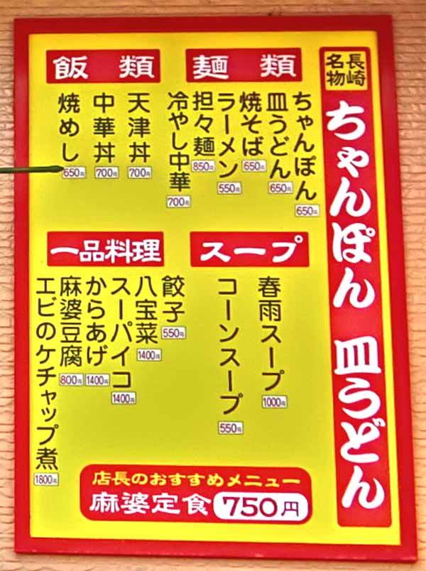| ちゃんぽん:650円 | ||||||||||||||||