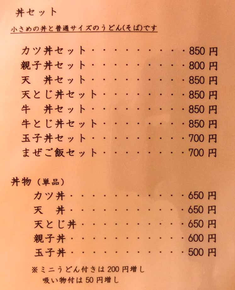| 天とじ丼:650円+ミニうどん:200円 | ||||||||||||||||