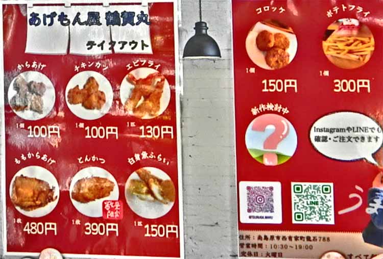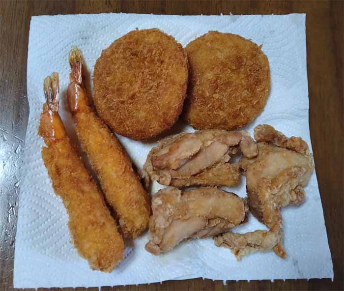 からあげ:100円x3 エビフライ:130円x2 コロッケ:150円x2 ![]() |