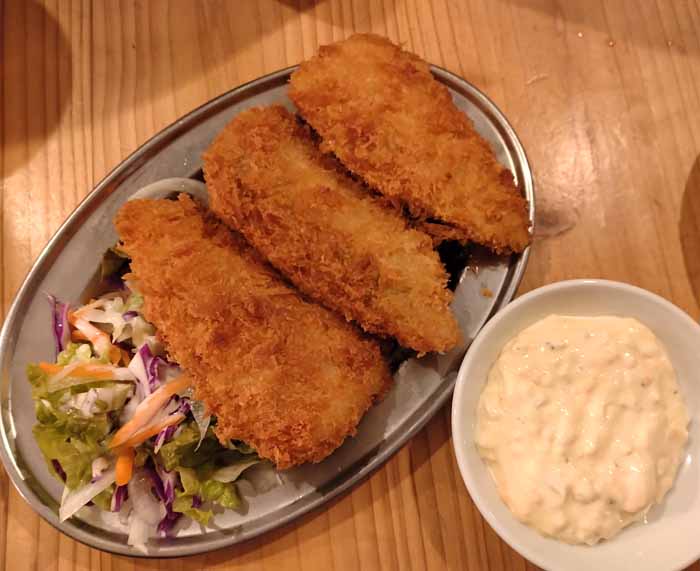 | 島原鶏のレアカツ:850円 松浦直送アジフライ:660円 | |