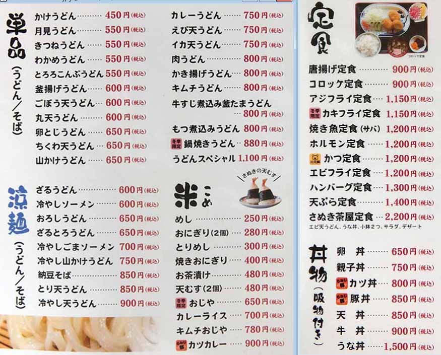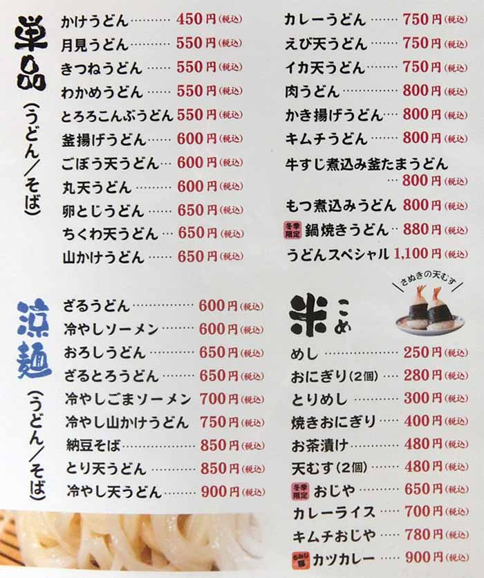 | 卵とじうどん:550円(税込) | ||||||||||||||||||||||