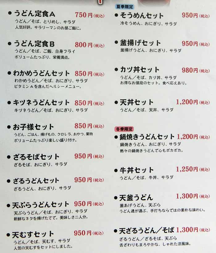 | 天釜うどん:1200円(税込) 天ざるうどん:1200円(税込) | ||||||||||||||||||||||