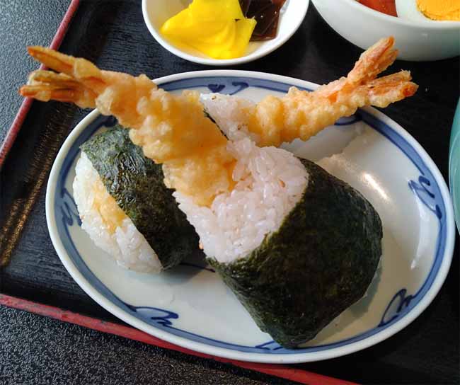 | 天むすセット:900円(税込) (うどん、天むす、サラダ、漬物) |