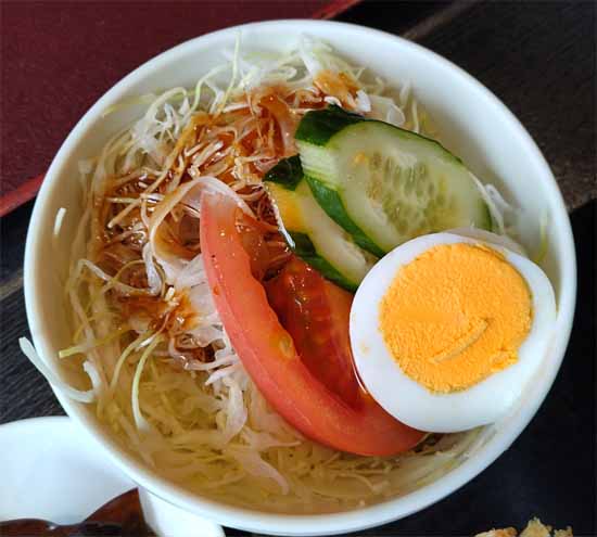| うどん定食A:700円(税込) (うどん、とりめし、サラダ、漬物) |