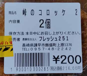 | 峠のコロッケ/2個:200円/216円 | |