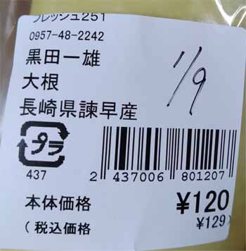| 諫早産大根:120円/129円 | |