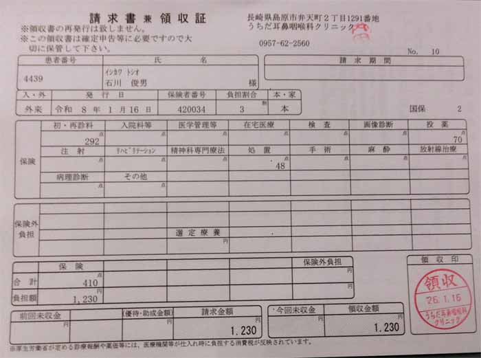 ![]() 診察&処方:1230円 |