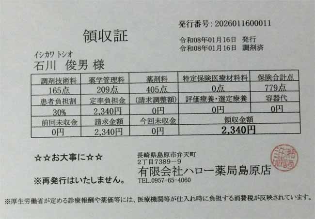 ![]() 薬:抗生剤、鼻炎、咳止:2340円 |