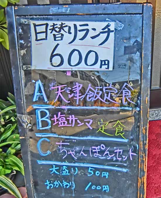 | 日替わり定食/天津飯:600円 | |||||||||||||||||||||