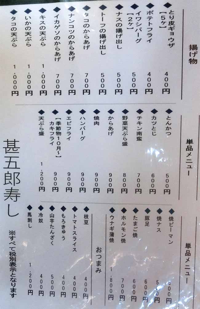 | 寿司割烹ろばた 甚五郎寿し | |