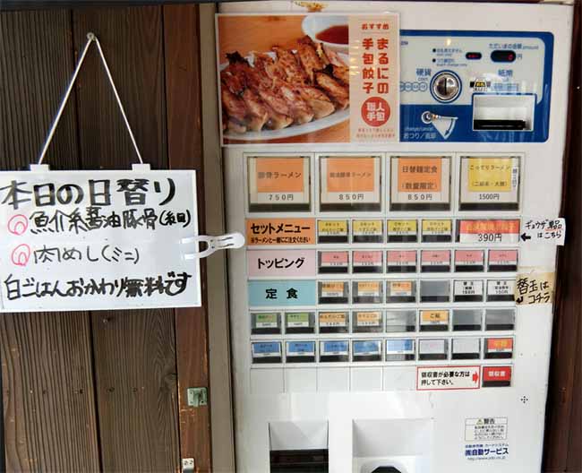 | お昼は「券売機」システム ラーメンセット、唐揚げ定食、アジフライ定食、餃子定食、各種トッピング ![]() |